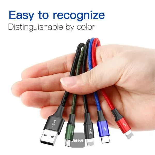 একটি ক্যাবলেই ৪টি পোর্ট — 2× Lightning 8-pin + 1× Micro USB + 1× Type-C, যা একসাথে একাধিক ডিভাইস চার্জ করতে সক্ষম।